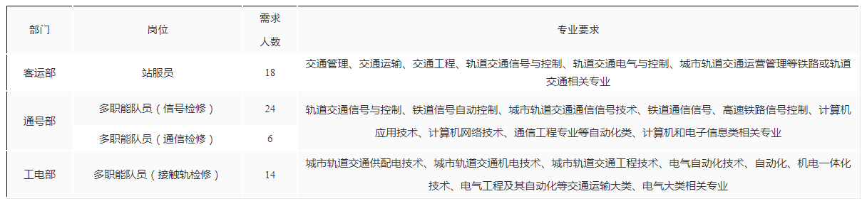 目前,公司设有通号部、机电部、车辆部、工电部等13个部门。为适应公司战略发展,推动公司高质量持续发展,经公司研究决定,拟对外招聘,现将有关事项公告如下: